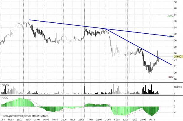 Вот список ценных бумаг, которые в ближайшее время могут пробить локальные нисходящие тренды, и обнаружить в себе открытый технический потенциал роста от 5 до 25%. Выбор есть и для инвесторов, и для спекулянтов.